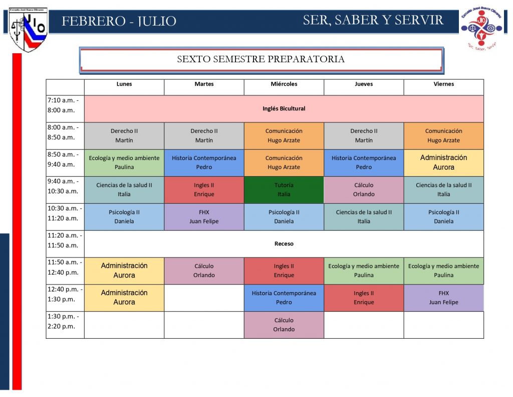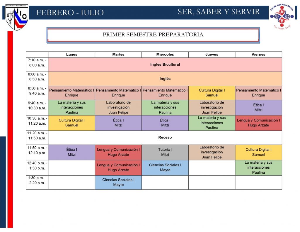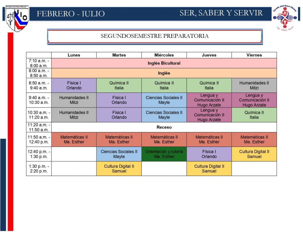 Horarios preparatoria
